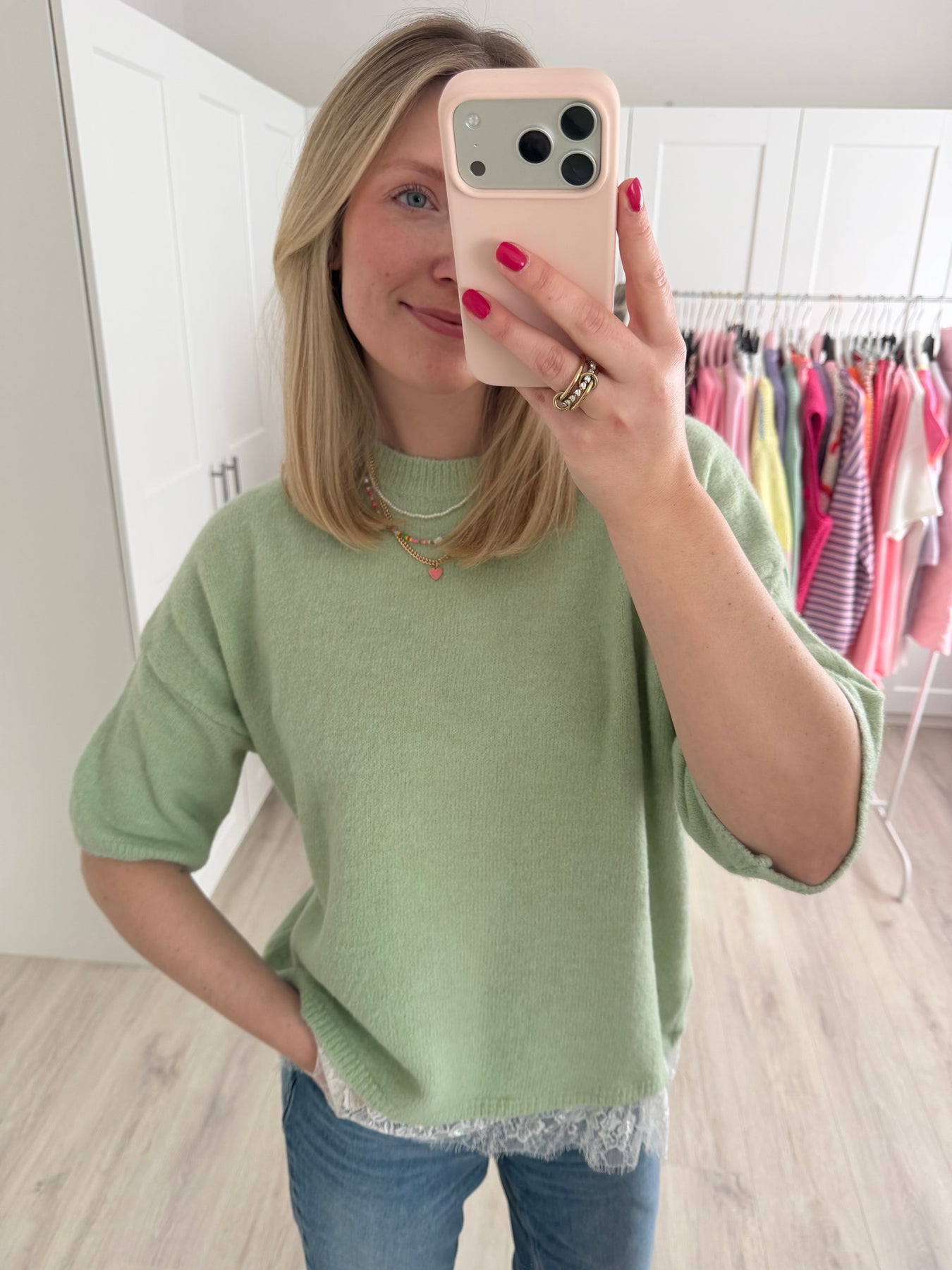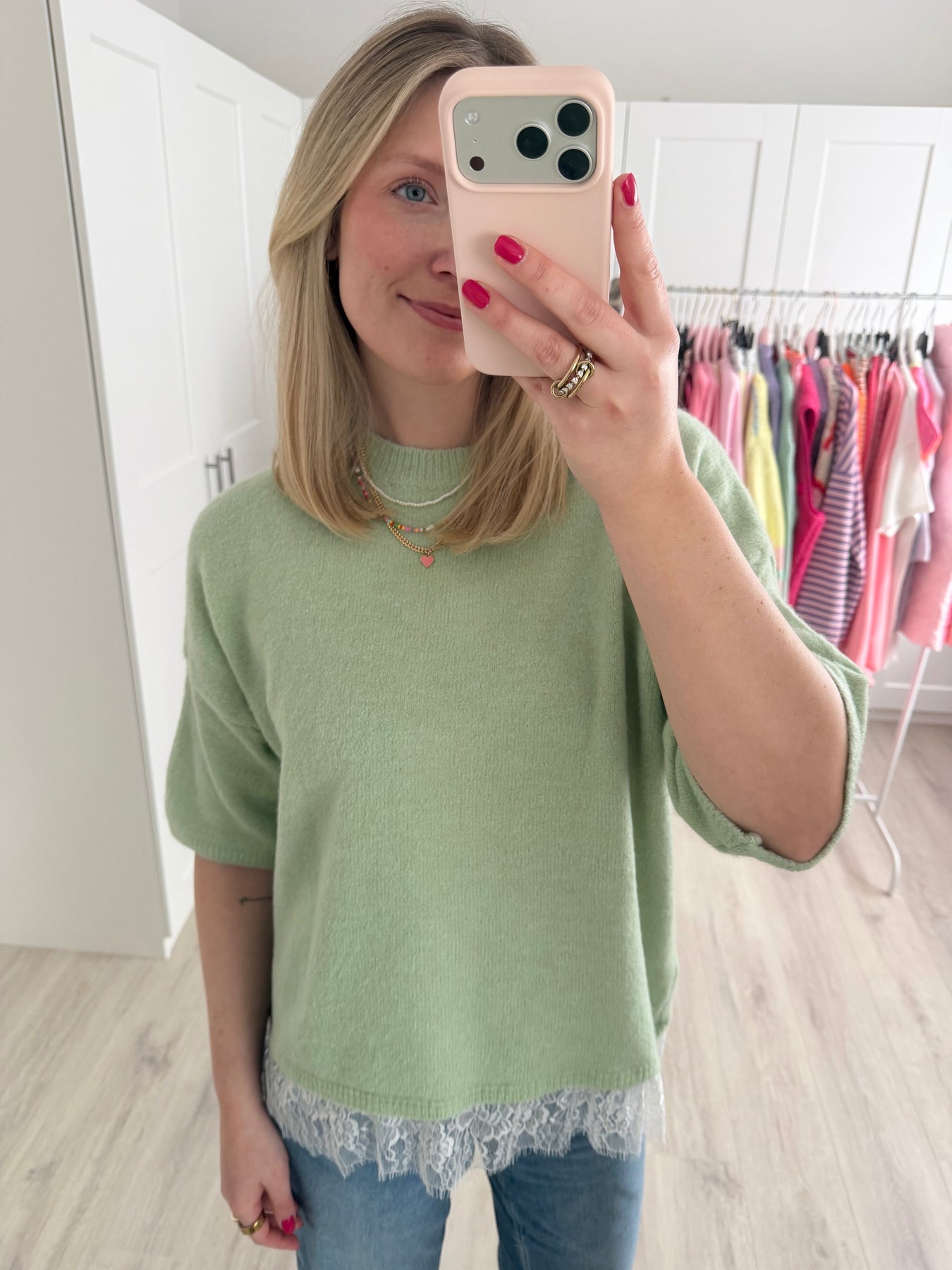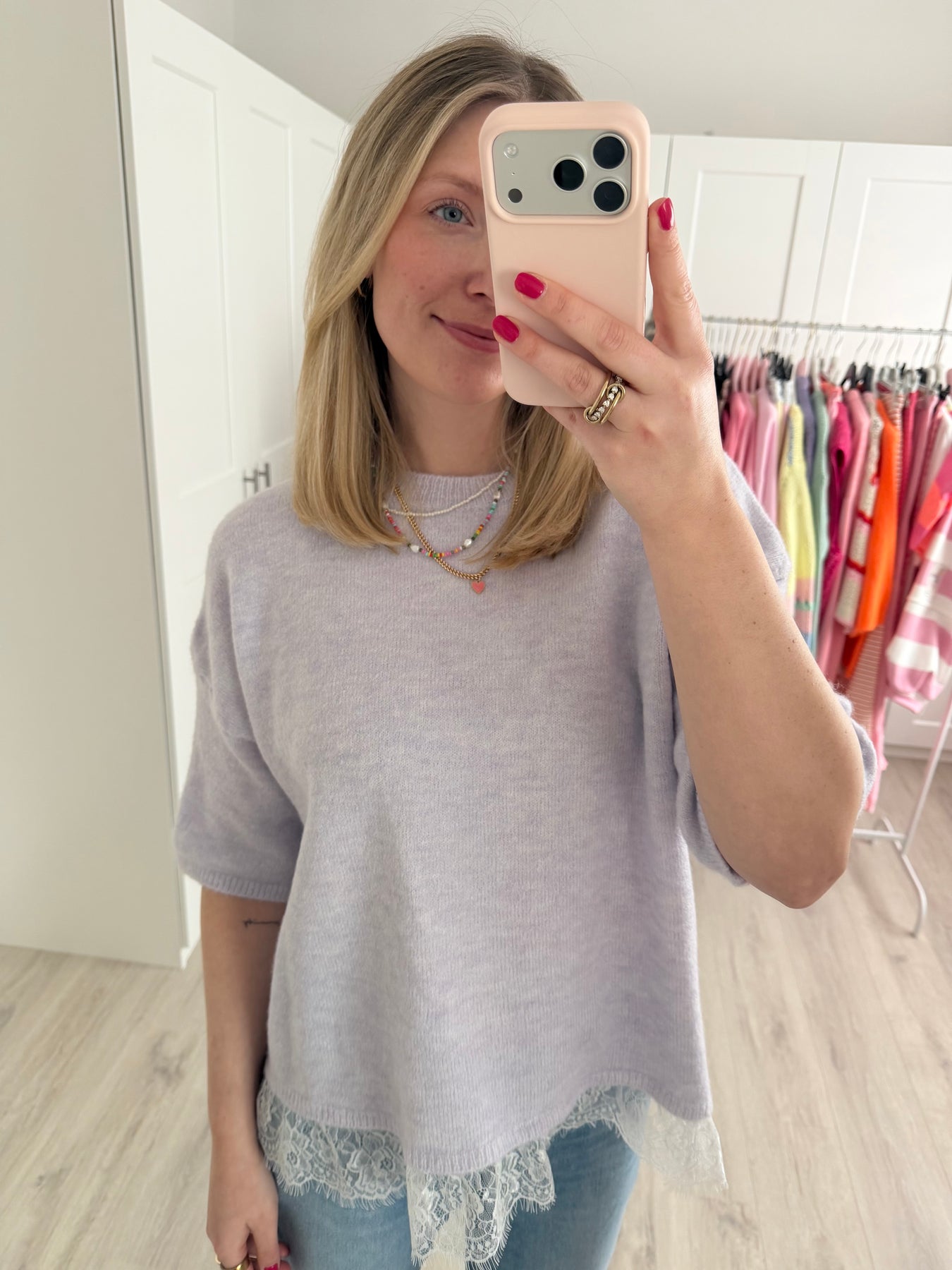 • Am Saum mit Spitze abgesetzt