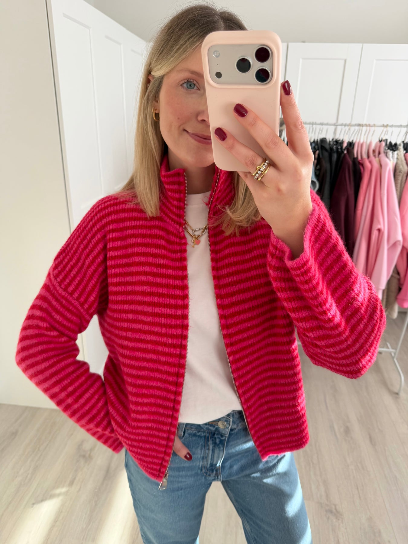 Striped Zipper Cardigan
